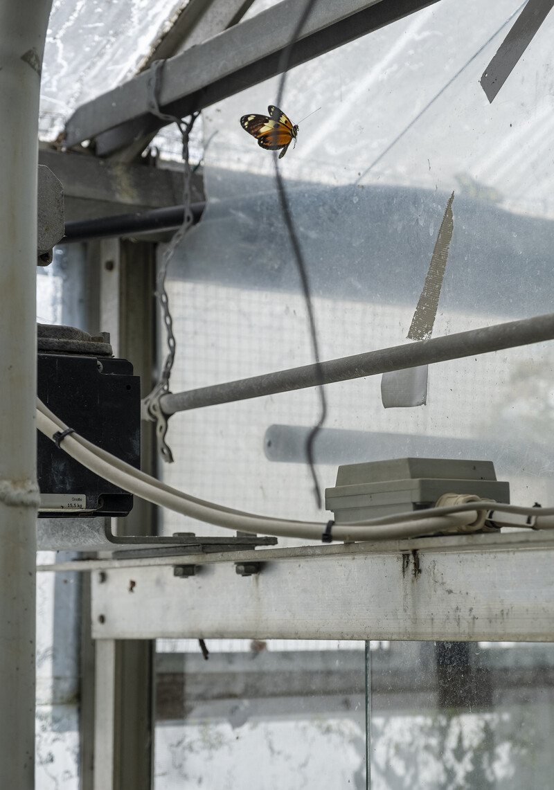 In Inari Sandell’s video, On Butterfly Logic, which lends video-stills and textual excerpts to the current campus lightbox exhibition, logic is interrogated through the notion of “butterfly logic”—a term given contemptuously to ways of thinking that are piecemeal, wandering, or otherwise nonlinear. “Butterfly logic” refers to the ostensibly scattered movements of butterflies in flight. In the video, butterflies whirl in concentric loops in a greenhouse while Sandell’s voiceover remarks: “from watching them fly in unison, I think they [butterflies] must make sense of each other.”