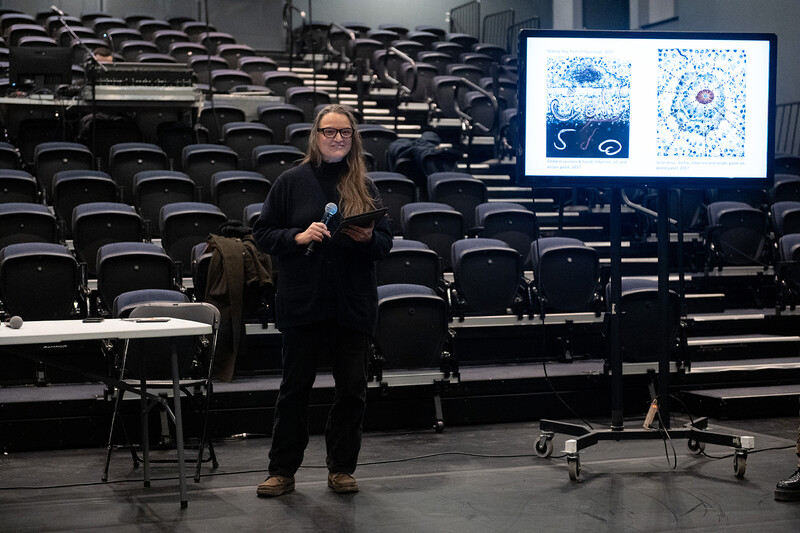 Erin Robinsong is a poet and interdisciplinary artist working with ecological imagination. She is author of Rag Cosmology (Bookhug, 2017) and Wet Dream (Brick Books, 2023), both winners of A.M. Klein Prize for Poetry. A poet-researcher at Concordia University, her interests include embodied poetics, hydrofeminism, multisensory performance, queer & feminist ecologies, geopoetics, and relational poetics and practices. Performances include Zone of Exaggerated Dreaming, a solo work about the abyssal ocean, and collaborative works with Andréa de Keijzer and Hanna Sybille Müller include This ritual is not an accident; Facing away from that which is coming; and Polymorphic Microbe Bodies. Erin grew up in Coast Salish territory, on Cortes Island.