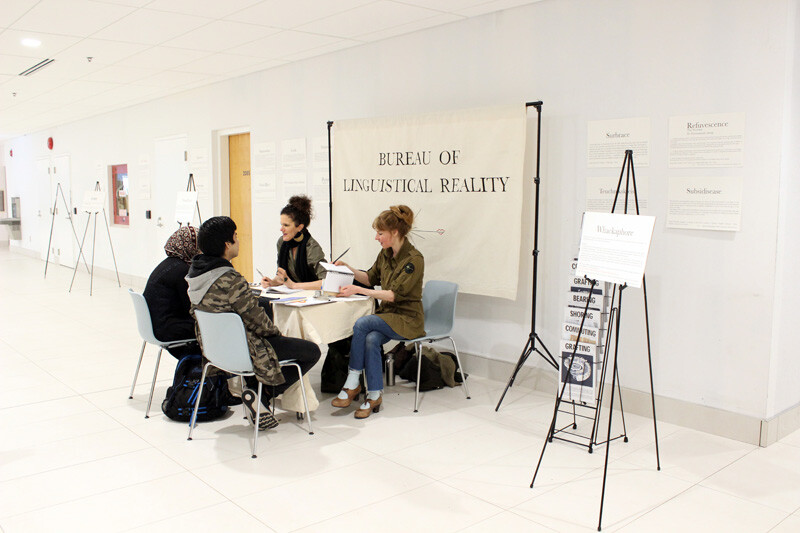 The Bureau of Linguistical Reality is a public participatory artwork by artists Heidi Quante and Alicia Escott focused on creating new language as a way to better understand global shifts due to human-made climate change and other anthropogenic events. Asking who has the agency to define the changing world around us—and the words we use to talk about it—The Bureau of Linguistical Reality creates a platform for people to identify new feelings, experiences and phenomena for which they do not yet have the language, and then to together coin neologisms to better understand and begin to discuss them. In Mississauga, The Bureau of Linguistical Reality will collaborate with members of various local communities to generate new words to express what people are feeling and experiencing as we grapple with a rapidly changing world.