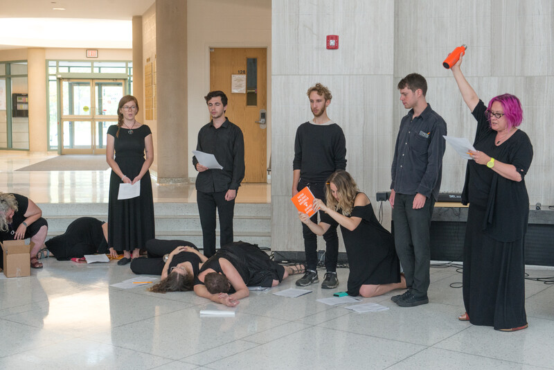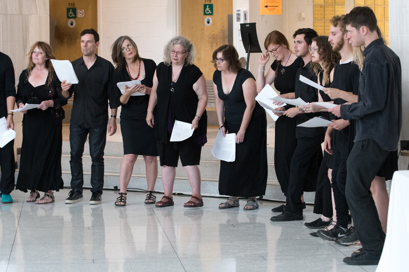 The Element Choir is an improvising choir based in Toronto, Canada, created by Christine Duncan and Jean Martin and directed by Christine Duncan. The Element Choir works with both structured and non-structured elements, based primarily on a system of conduction cues. As an ensemble they explore textural and timbral sound qualities, soundscapes, rhythmic patterns, sound poetry, musical genre interplay, and extended voice techniques. This cinematic approach to group vocalizing presents both tonal and non-tonal material in a constantly evolving and “in the moment” sonic environment.