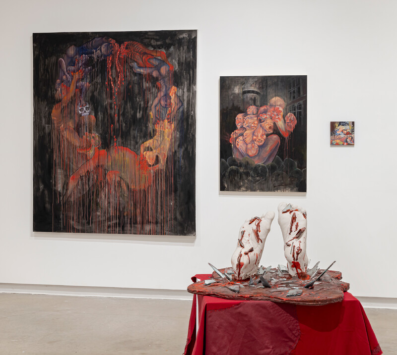 Across both galleries, the artists confront the inevitability of societal norms and expectations–both imposed on and upheld by the individual and the collective–offering dynamic perspectives on shared social and cultural experiences.