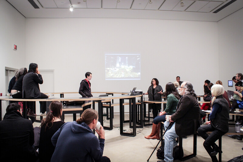 Scott Sorli’s transdisciplinary practice concerns itself with moments when form and matter engage the economic and political forces that produce the city. Activist work includes curating convenience, a window gallery that provided an opening for art that engages, experiments, and takes risks with the architectural, urban, and civic realm; working with the Toronto Public Art Committee at City Hall; chairing the peace sub-group of the Nathan Phillips Square Community Advisory Committee; and currently as president of CUPE 5524 at the University of Waterloo. He has professional degrees in process control engineering and in architecture, as well as a post-grad in design research. His work has been published in Twenty and Change 01: Emerging Toronto Design Practices; the journal Scapegoat: Architecture/Landscape/Political Economy; the magazine Horizonte: Angst; and exhibited at the Duderstadt Digital Media Commons: Bad Infinity; Atomic Centre: Total Spectacle; Drone Research Lab: Disposition Matrix and the Albright Knox: GASP!