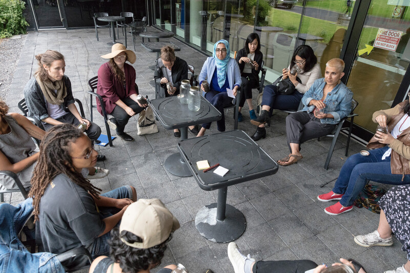 In Golboo Amani’s Garden Skool, workshops with local earthworkers operate as sites for community skill-sharing and knowledge exchange, repurposing the University’s landscape as a space rich with pedagogical potential outside the traditional classroom structure. For the first component of Garden Skool, Melisse Watson presents the workshop “Soil On Which We Stand,” identifying soil, plants, trees, and flowers as relatives, and elders, that inform the deepening of our relationships to land. Abedar Kamgari’s site-specific performance, as part of her ongoing project Finding words for the feeling, navigates the unfamiliar spaces of the campus by tracing the intimacies of human presence woven into the University’s public but often inaccessible sites. Chloé Roubert and Gemma Savio’s intervention into the campus lawn, It Takes Work to Get the Natural Look, explores the tensions between modernist architecture and green spaces by foregrounding questions of labour, landscaping, and the constructed definitions of what is natural and what is cultivated.