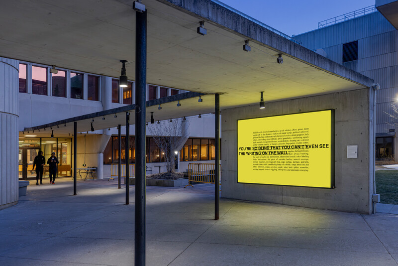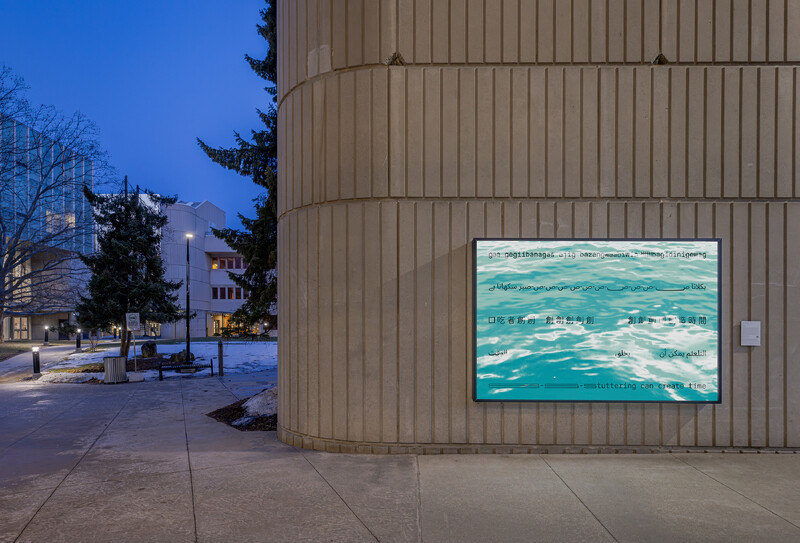 In a Manner of Speaking (IMS) explores the longing to be understood, interrogating the limitations of language and the inadequacies of culturally dominant vocabularies. Across three chapters–reading, speaking, and listening emerge as acts of invention and reinvention, shaped by diverse lived experiences. Artists reimagine communication, challenge colonial and ableist linguistic norms, and illuminate the intersections of identity, access, and expression. Structured like a book–a medium for sharing information and ideas–this three-part exhibition animates four outdoor lightboxes and moves from Encounter and Negotiation to Longing and Desire, and finally to Understanding and Fulfillment.