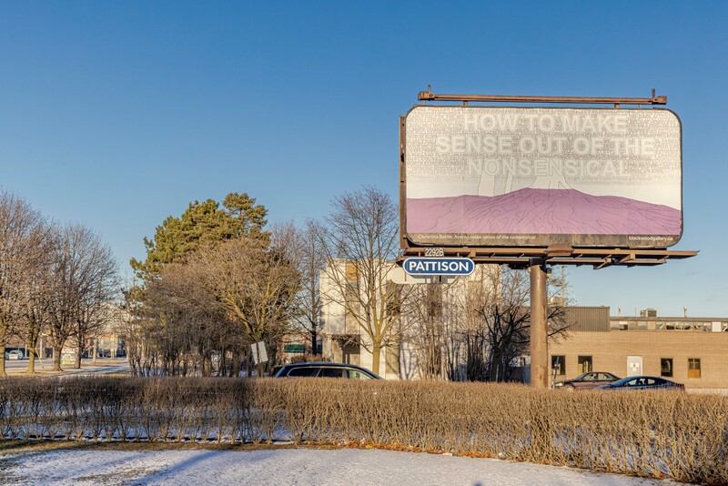 Each part of This Unfathomable Weight features a fifth image on a public billboard in Mississauga for the first month of the exhibition. For Movement Two: Ecology, the public billboard appears on Lakeshore Road East, east of the intersection with Lakefront Promenade, on the south side facing west, January 9–February 5, 2023.
