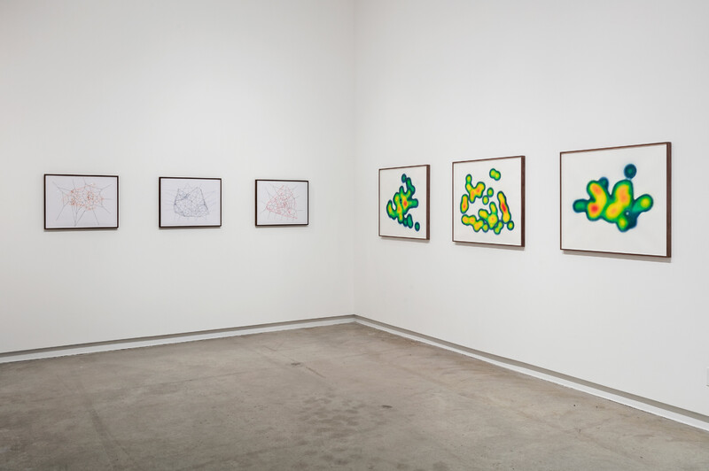 In the Blackwood Gallery, The Elements of Influence (and a Ghost) brings together four projects: Patterns of Life (2015), which explores the history of the technological capture of human movement from George Demenÿ’s chronophotography to the “activity-based intelligence” generated by the US National Geospatial-Intelligence Agency; What Shall We Do Next? (2014), a video work on patented and copyrighted gestures such as Apple’s “slide-to unlock” movement; Drawing Workshop – B.A.C. of 14th district of Paris (2011–2015), drawings of crime maps made by Paris police officers; and Forget the Money (2011 & 2017),an installation centered around Bernie Madoff’s personal library with their premonitory titles.