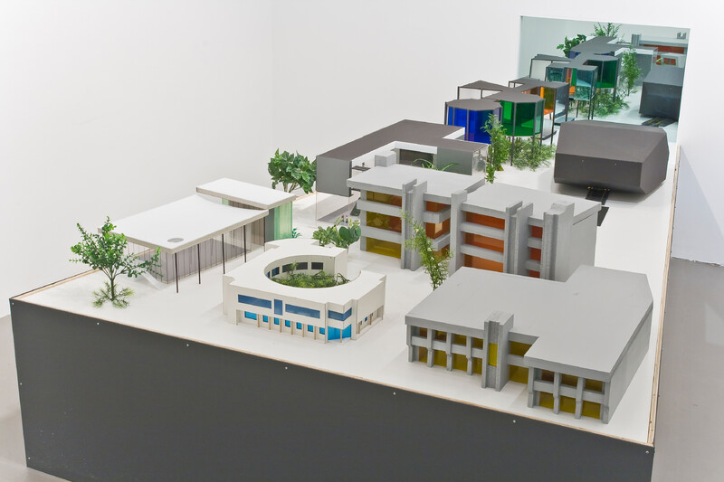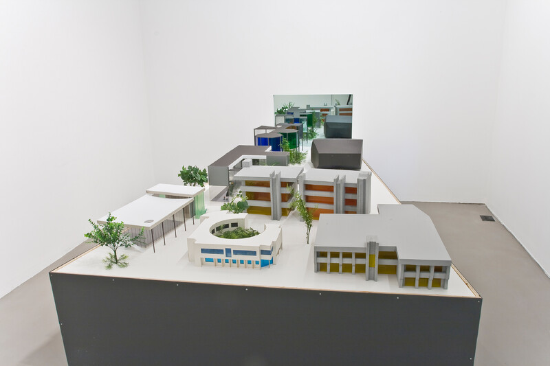 Belgian-Canadian artist Stéphane Gilot, who lives and works in Montreal, has transformed the e|gallery (and its adjacent Video Wall, both in the CCT Building) into his project Cineplastic Campus. As artist-in-residence with the gallery, Gilot has worked with university faculty and artists to produce a series of lectures on subjects that range from new media culture, photography and the uncanny, pedagogy and perception, representations of contemporary identity, the worlds of cyberspace, and possible convergences of these subjects. These lectures take place in an elaborate model of UTM campus that Gilot has carefully constructed in the e|gallery.