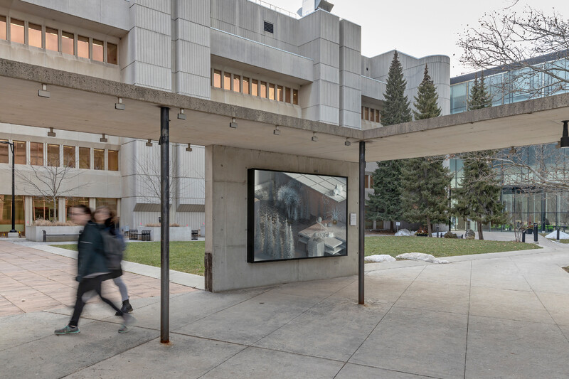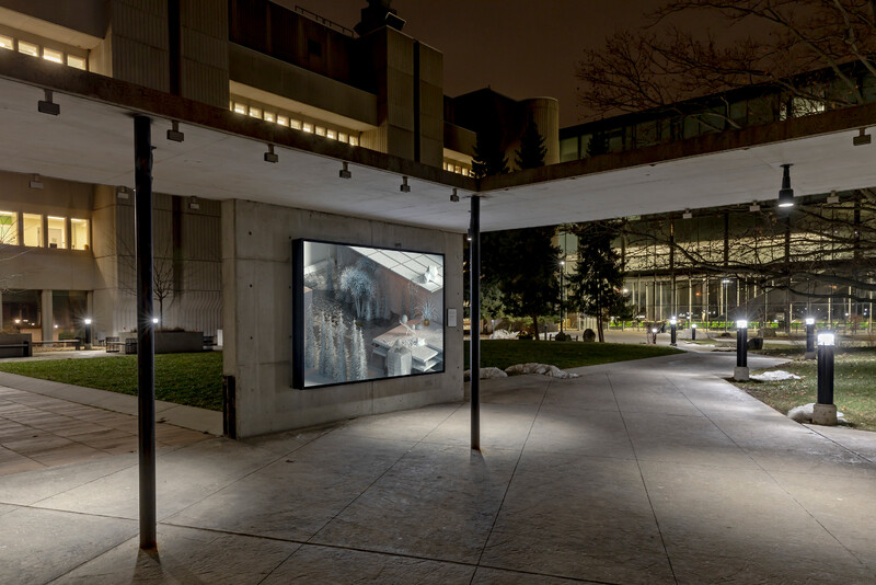 McLeod’s works build imagined virtual worlds; animations display micro-environments where anthropomorphized forms are granted the gift of motion, and 3D-rendered landscapes explore the interconnectivities, infinities, and indefinite editabilities built into the creation of digital spaces. In a lightbox and three video works playing on screens across the UTM campus, McLeod considers the implications of playing creator and questions how we engage with digital characters and environments on a daily basis online in games, marketing, and design.