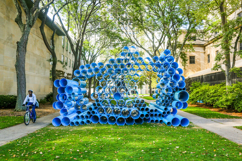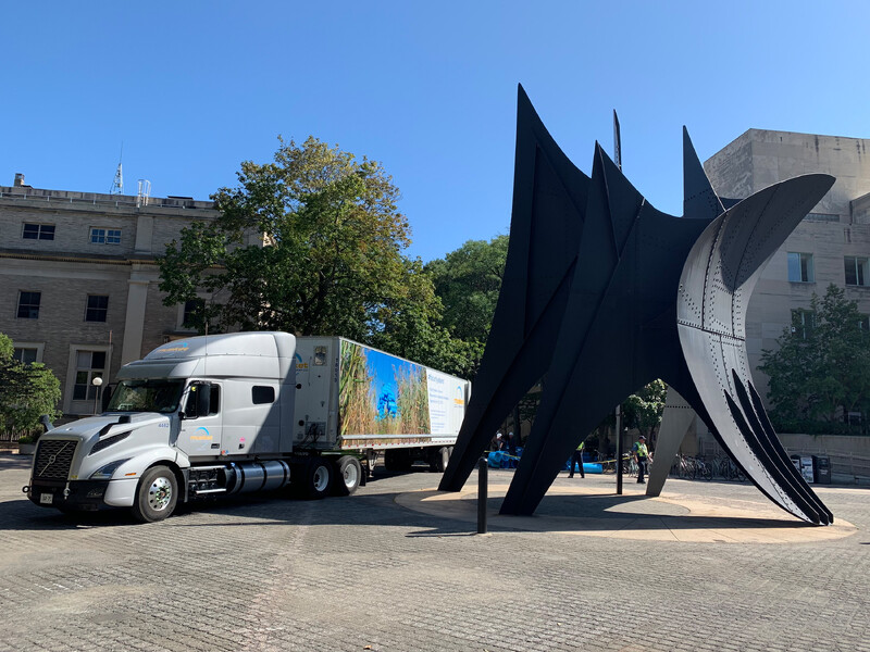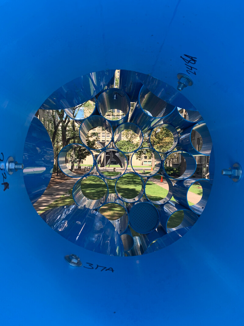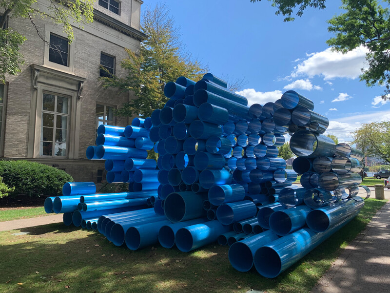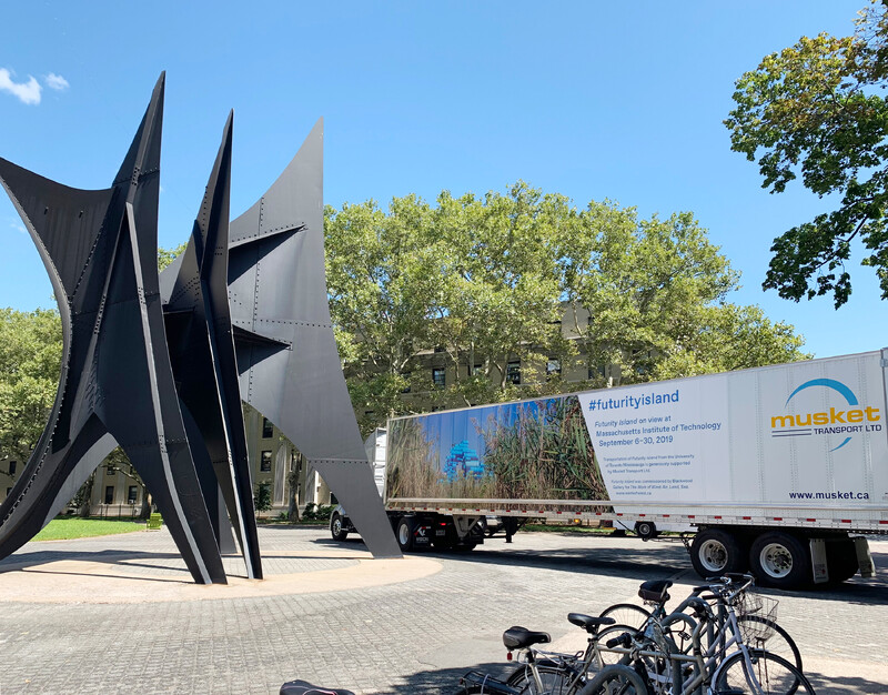 First presented at The Work of Wind: Air, Land, Sea in September 2018, Futurity Island was disassembled into individual pipe sections, and repacked into a single 53’ Musket Transport Ltd. trailer to be trucked from Mississauga to Cambridge, MA. With Futurity Island’s “swamp” making a cross-border transit, the work moves through geographies and infrastructures shaped by human restructuring of natural space—at the Massachusetts Institute of Technology, Futurity Island will be reassembled to animate the local environment alongside the Charles River. At a new site following its first presentation near Lake Ontario, Futurity Island’s pipe serves as a conduit to amplify and reverberate the cultural and environmental histories of each location.