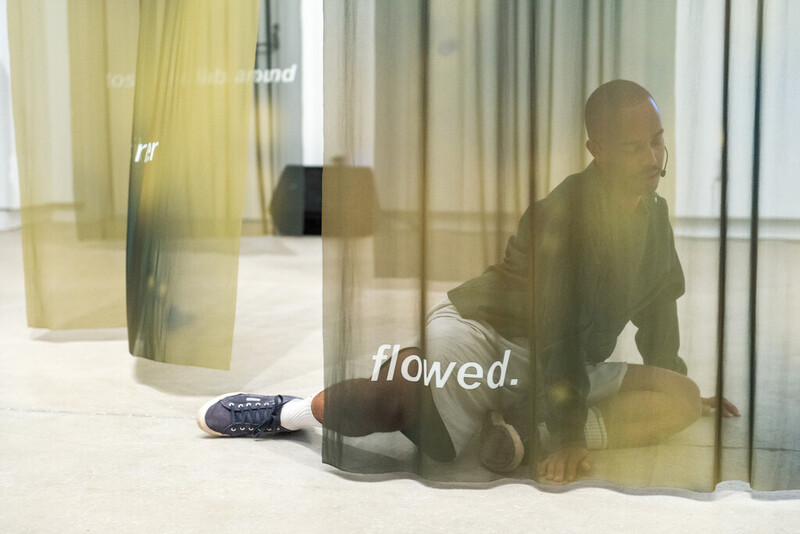 Paul Maheke’s work evokes the political dimensions of self and collective care, fragility, and sustenance. As Habits of Care curator Helena Reckitt explains, “the video diptych in Mutual Survival, Lorde’s Manifesto (2015) juxtaposes two forms of dance, both filmed in the same East London community centre. As the title suggests, the piece also pays homage to the late black feminist writer Audre Lorde. In subtitles drawn from Lorde’s writings, selfcare is described as a practice of decolonization and feminist emancipation. A subwoofer placed on the floor across from the flat-screen monitors resonates in the visitor’s own body.” Paul Makehe’s performance titled Seeking After the Fully Grown Dancer *deep within* initiates an authentic embodied dialogue with his audience. Following principles of Authentic Movement—including closing his eyes, engaging in mindfulness, and trying to move un-self-consciously in the presence of a witness— Makehe creates a unique performance that draws authenticity from spontaneity.