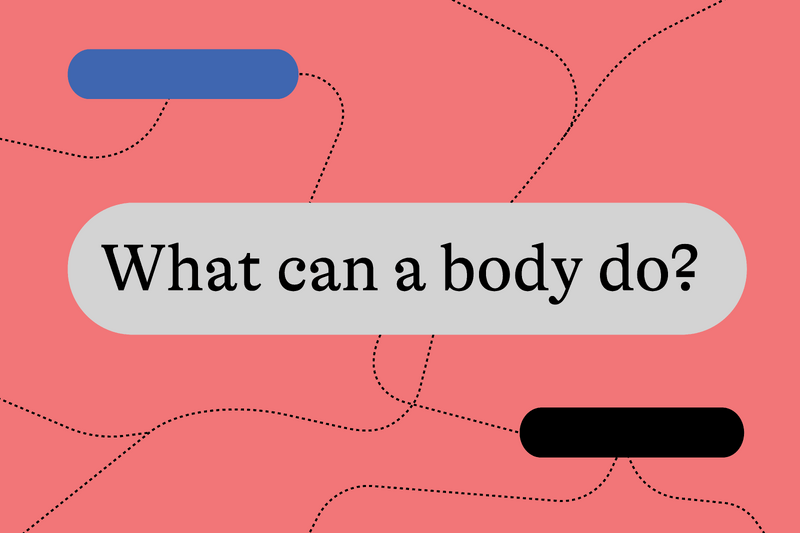 This question was first posed by 17th century philosopher Baruch Spinoza to consider how thought and action are intertwined through the body’s power to act, to be acted upon, to affect others and to be affected. More recently, Gilles Deleuze readopted Spinoza’s question to assert that we still don’t know what a body can do: not only its physiology, but its capacity for inquiry, relationality, and creativity. In again re-posing this question, we expand its focus beyond the singular: a body encompasses bodies as collective entities, and non-human bodies. In spite of the many ways modernity imposes bodily alienation—through the mechanization of work, or hyper-individualization, for example—the body remains a confounding and elusive organism. Our bodies have wants and needs that make them irreducible to bounded and linear thought. Creative inquiry provides a means to riff and reframe Spinoza’s simple yet expansive question, spiraling it out into related ones: What counts as a body? Where do bodies’ desires and capacities lead? How do we understand non-human bodies? What can’t a body do?