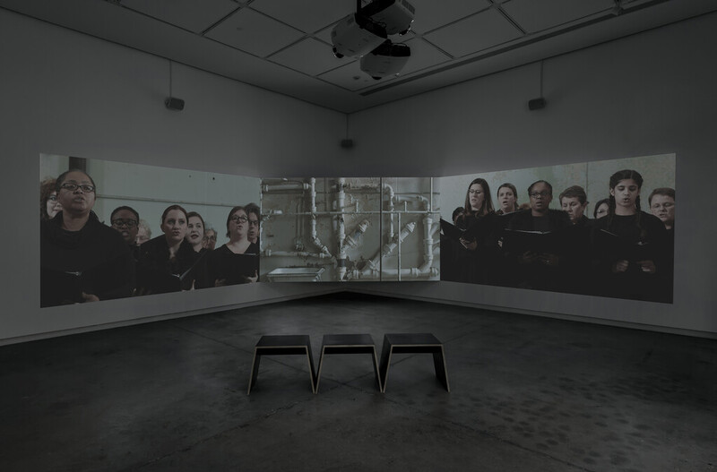 Four Industries is a three-channel film where an all-female choir recites sounds associated with Cincinnati’s major industries of the late 19th and early 20th centuries: metal casting, meatpacking, printing, and woodworking. Filmed in a historic brewery in Over-the-Rhine, the resulting a cappella chorus is rhythmic and repetitive, recalling the pouring, pounding, cutting, and hammering associated with the manufacturing of goods. By using the human voice to emulate mechanized sounds, Tania Candiani reminds us of the corporeal impact of labour—the bodies that were required to support the processing of raw materials during America’s Industrial Revolution.