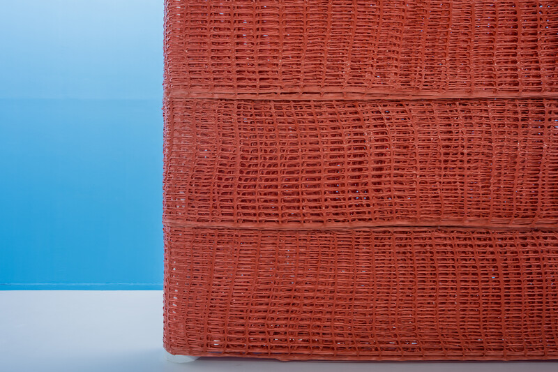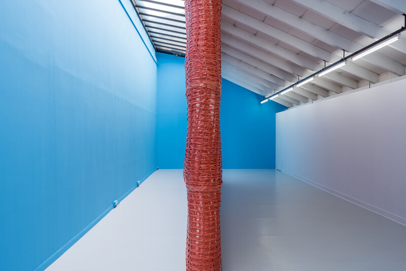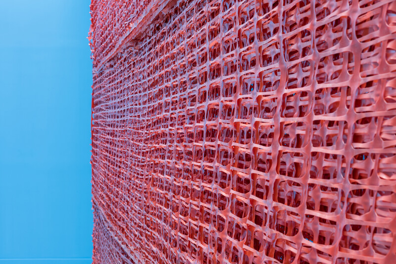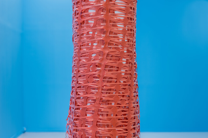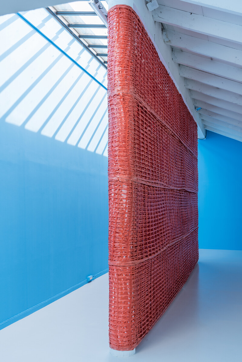 Sheena Hoszko’s new sculptural work considers how prisons, and the carceral web that surrounds them, create groups of people who have been deemed unworthy of care. People of colour, poor people, migrants, and people living with mental illness make up the majority of those in the French penitentiary system. Currently, 71,000 people are incarcerated in French prisons with 10 000 on parole, and an additional 47,000 in migrant detention. France is currently allocating more funding for its 182 prisons, expanding its prison system due to massive overcrowding, and renovating deteriorating facilities. This focus on renovating and expanding prisons reinforces carceral logic. Rather than addressing the reasons why people are criminalized—systemic racism, poverty, global migration due to conflict, and a lack of mental health resources— the state’s focus is on creating "better" living conditions on the inside, including the renovation of Prison de la Santé. In January 2019, Hoszko walked the perimeter of the Prison de la Santé and translated her steps into a distance: 797.35 metres. This distance has been wrapped in orange security fencing around the support columns of one of La Ferme du Buisson’s galleries and its walls have been painted a penitentiary blue. The recontextualization of this site as a sculptural work does not attempt to replicate the feeling of incarceration, but instead functions as a political tool, making visible the limits of care under which state borders and prisons function.