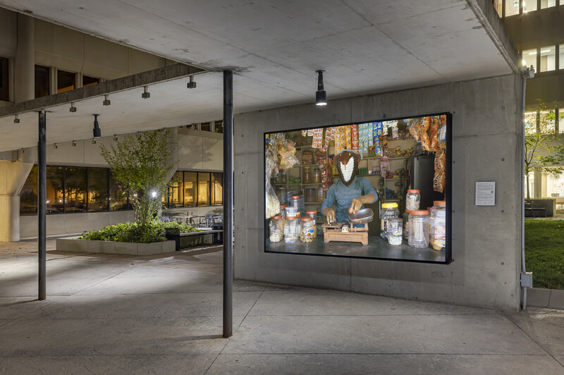 Created in collaboration with the paper mâché artists of the Kokna and Warli tribes, this featured work from the series Acts of Appearance uses Bohada-style masks to tell fictional stories of contemporary life in the villages of Adivasi. Both the Kokna and Warli tribes are located in Jawhar, in Palghar district, which is considered to be one of the most impoverished districts in Maharashtra.