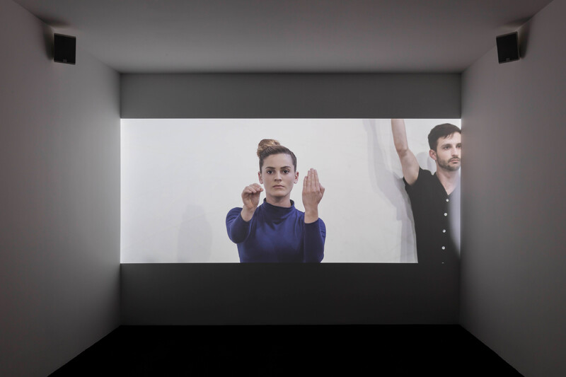 “The future is already here—it’s just not very evenly distributed,” says William Gibson. Gestures used to activate new devices are patented—for example, the “slide-to-unlock” movement patented by Apple in 2011. Julien Prévieux started to collect these specific movements in 2006. His assumption was that the gestures patented today are the movements we may all have to do in the near future: patents as an archive of gestures to come. To date, Prévieux has created three sequences of WSWDN?: Sequence #1 is the archive of gestures shown as a 3D animated short film; Sequence #2 is a video made with six performers; Sequence #3 is a set of live performances questioning the property of gestures. Featured in the exhibition at Blackwood Gallery is Sequence #2 and Sequence #3.